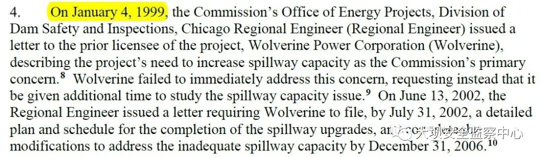 事實(shí)上,Edenville大壩被要求提高泄洪能力的文件記錄最早甚至可以上溯到1999年1月。而在此后的20余年中,大壩業(yè)主雖然由Wolverine Power Corporation變更為Boyce Hydro(2004年),他們與大壩監(jiān)管機(jī)構(gòu)“打太極”方式一直未變——通過各種泄洪能力專門論證拖延整改,水庫的泄流能力也一直未能本質(zhì)提升。即使2018年大壩發(fā)電許可被吊銷,大壩業(yè)主也僅將大壩列入待出售狀態(tài),而沒有采取任何有針對(duì)性的處置措施,最終釀成此次大壩潰決事件,嚴(yán)重威脅了下游地區(qū)的公共安全。