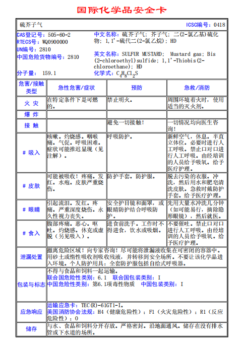 硫芥子氣MSDS