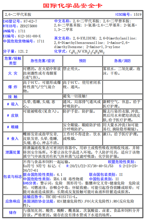 2,6-二甲代苯胺 MSDS