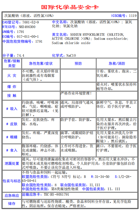 次氯酸鈉(溶液,活性氯>10)MSDS
