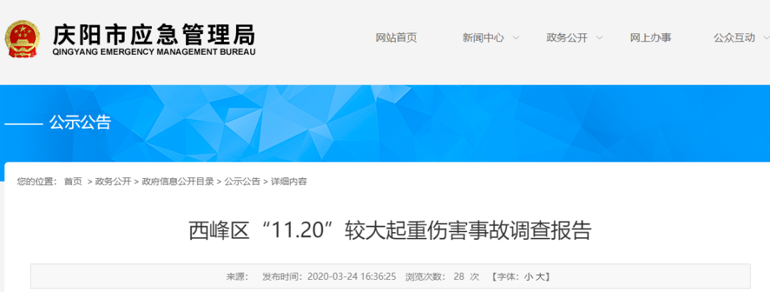 經(jīng)調(diào)查認定,西峰區(qū)“11·20”較大起重傷害事故是一起生產(chǎn) 安全責(zé)任事故。