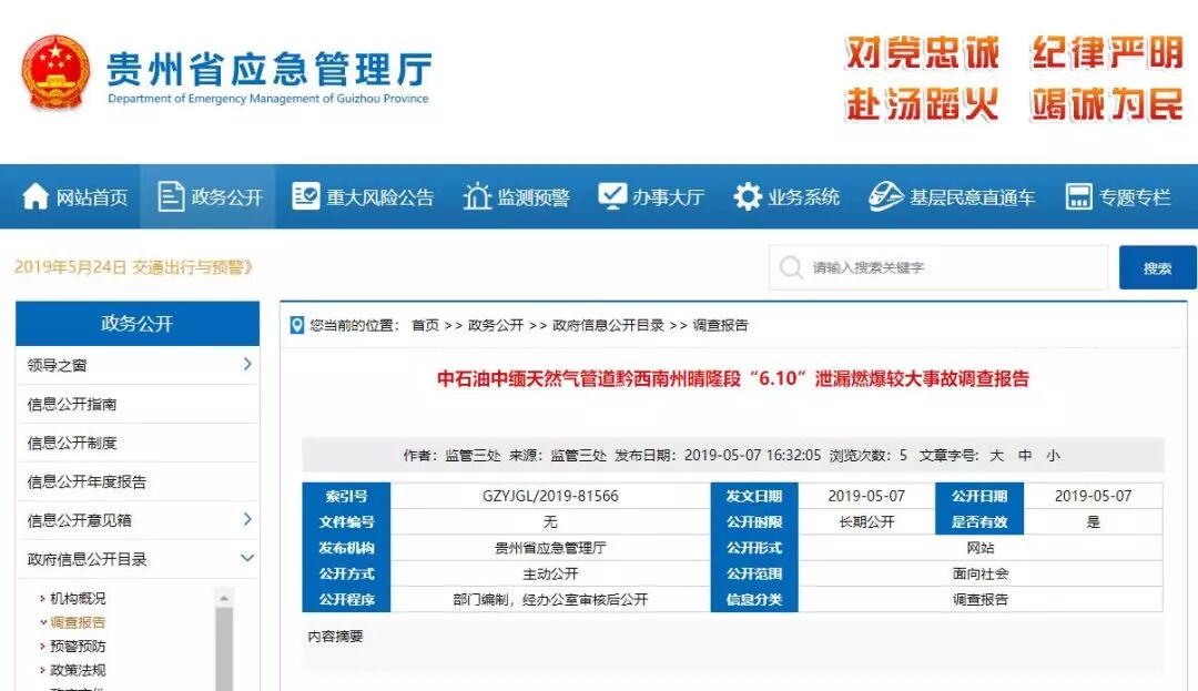 2018年6月10日23時(shí)13分許,中石油中緬天然氣輸氣管道黔西南州晴隆縣沙子鎮(zhèn)段K0975-100m處發(fā)生泄漏燃爆事故,造成1人死亡、23人受傷,直接經(jīng)濟(jì)損失2145萬元。