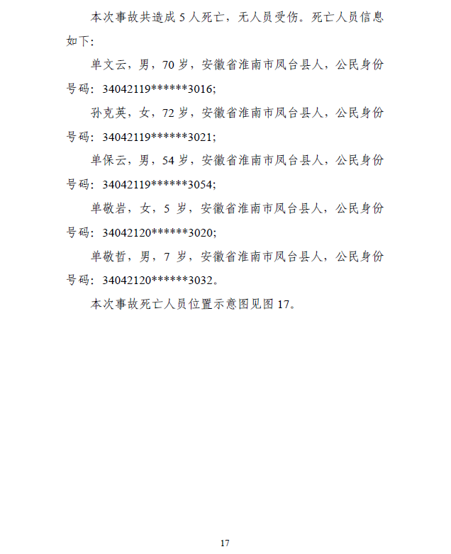 單保云、單文云二人對事故發(fā)生負有直接責任,鑒于其二人已在事故中死亡,建議免于追究刑事責任;對事故重要責任人陳保青給予行政處罰;對事故相關政府、部門(單位)等9名人員分別給予相應的黨紀政務處分和實施組織處理;責成尚塘村委會、尚塘鎮(zhèn)市容環(huán)衛(wèi)所向尚塘鎮(zhèn)人民政府作出深刻書面檢查;責成鳳臺縣公安局尚塘鎮(zhèn)派出所向鳳臺縣公安局作出深刻書面檢查;責成尚塘鎮(zhèn)人民政府向鳳臺縣人民政府作出深刻書面檢查;責成鳳臺縣人民政府向淮南市人民政府作出深刻書面檢查。