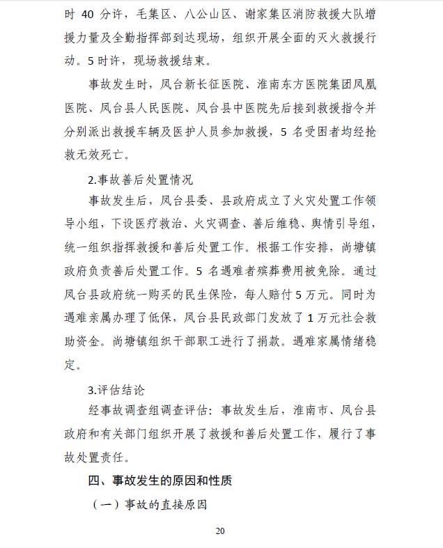 近日,安徽省政府批復《淮南市鳳臺縣“2020?5?28”較大火災事故調查報告》,同意調查組對事故原因和性質的認定、對責任人員和責任單位的處理建議以及提出的事故防范措施。
