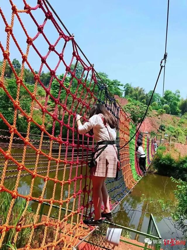 據(jù)“納溪夢里水鄉(xiāng)”微信公眾號介紹,“水上側(cè)攀網(wǎng)”可讓人體驗蜘蛛俠爬墻走鋼絲的感覺,網(wǎng)長25米,坡度85度。側(cè)爬網(wǎng)對學(xué)員們身體平衡感、敏捷度有一定的考驗??梢藻憻捰職?,讓人克服恐高癥和膽怯心理。
