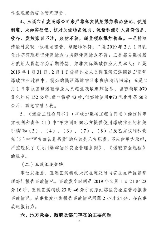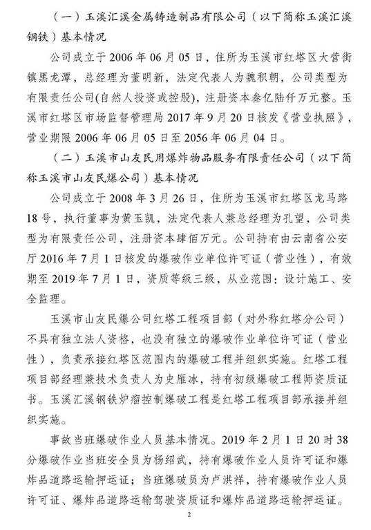玉溪市應(yīng)急管理局完成對玉玉溪匯溪鋼鐵鑄造制品有限公司“2 01”較大放炮事故調(diào)查報告