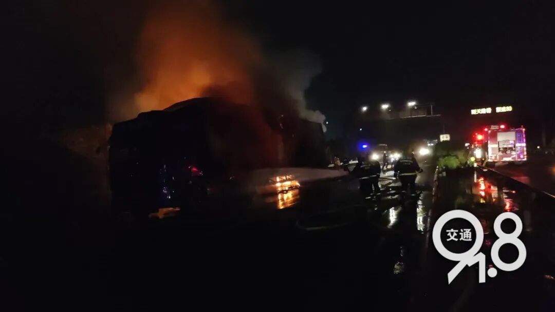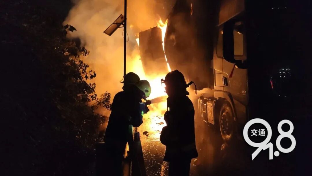 2020年6月5日晚上23時38分,白楊消防救援站接到指揮中心調(diào)度稱:位于錢塘新區(qū)白楊街道上海往金華方向下沙收費站不到兩公里處,一輛貨車起火。接到報警后,白楊消防救援站立即出動3車15人趕赴現(xiàn)場處置。隨后調(diào)派下沙站、江東站、瓜瀝站6輛水罐車33人趕赴現(xiàn)場增援。
