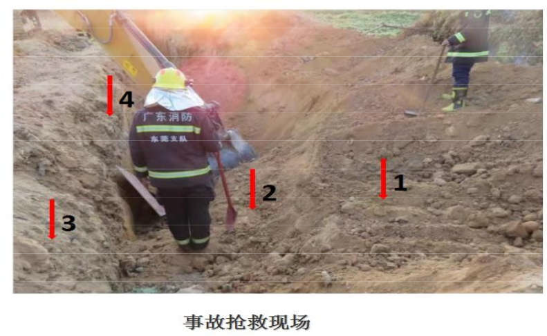 事故發(fā)生后,現(xiàn)場施工人員拔打了相關(guān)報警和救援電話,橫瀝醫(yī)院和消防大隊迅速到場救助。消防大隊派出6輛消防車、 26名指戰(zhàn)員趕赴現(xiàn)場,于16點55分到達現(xiàn)場進行處置,到場后發(fā)現(xiàn)有一人下身被埋在溝地下,三名工人正在挖掘被困人員,消防大隊迅速安排現(xiàn)場作業(yè)人員撤離,用木板固定周邊泥土防止再次塌方,同時利用挖土機清理周邊泥土,后用鐵鏟和徒手挖掘。接報后,橫瀝鎮(zhèn)鎮(zhèn)長趙智佳、黨委副書記袁俊凱第一時間趕赴現(xiàn)場指揮救援,應(yīng)急管理、公安、住建等相關(guān)部門派出人員控制并妥善保護好事故現(xiàn)場并開展調(diào)查,同時采取相應(yīng)的應(yīng)急措施,確保作業(yè)現(xiàn)場安全,避免事故進一步擴大。