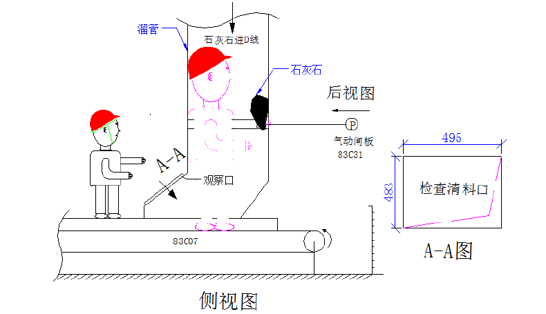2.3水泥部供料工段沒有對下料溜管閘閥卡堵的原因進行深入分析,未能及時發(fā)現(xiàn)該下料溜管內(nèi)閘板上方的積料板脫焊,且該積料板與溜管內(nèi)壁有170MM的間隙,導(dǎo)致石灰石卡堵氣動閘閥。