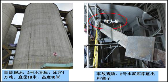 水泥庫(kù)北面內(nèi)壁局部突然發(fā)生積料滑落,物料進(jìn)入減壓錐內(nèi),導(dǎo)致作業(yè)人員后退躲避墜落排料口,是事故發(fā)生的誘因。