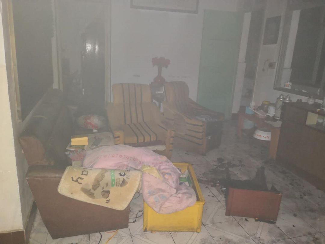 隨后,張世富與兒子用水桶、塑料盆接水,合力潑水滅火,很快將客廳里火勢控制。