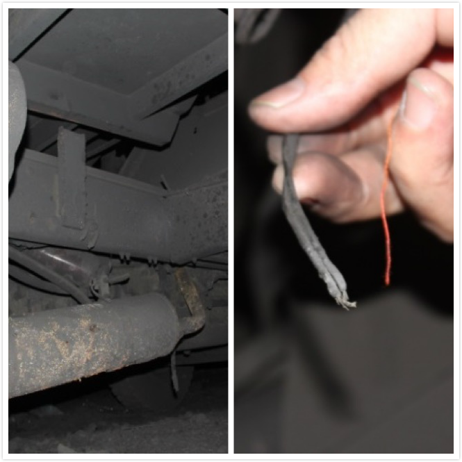 圖7 C17號車排氣管圖8 C17號車駕駛室裸露電線